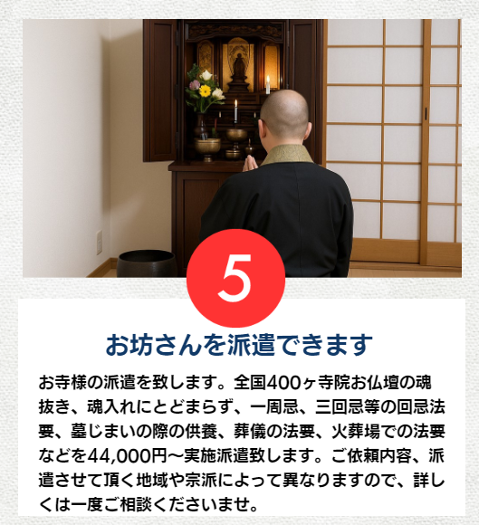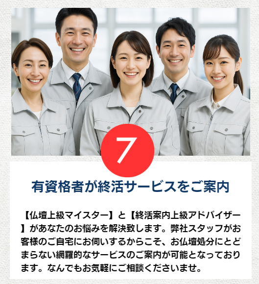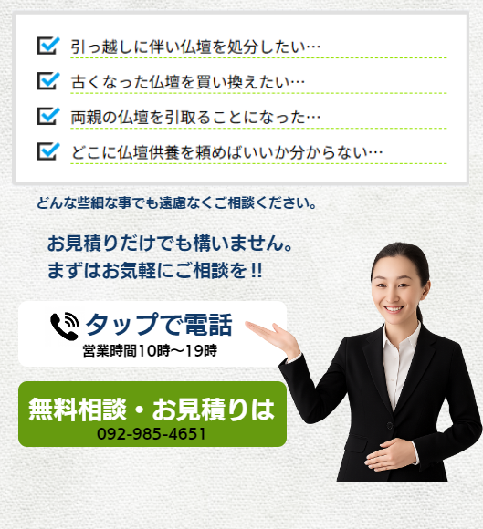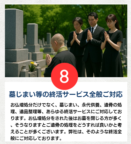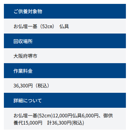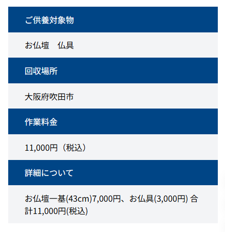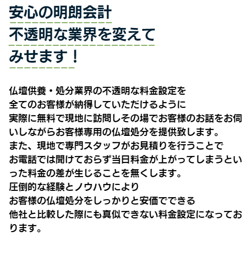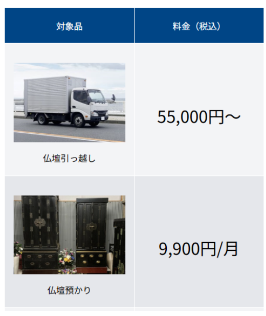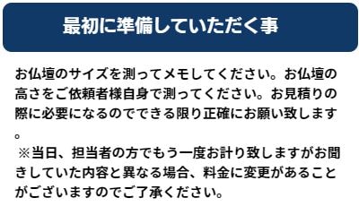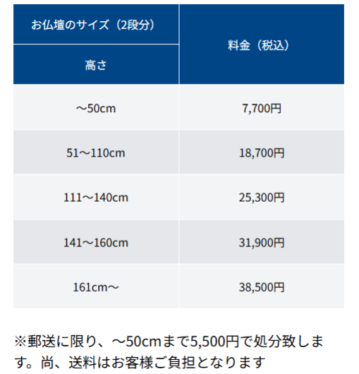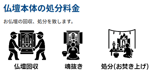 - 位牌や遺影,掛け軸などのお焚き上げが必要なものは別途費用が発生します。